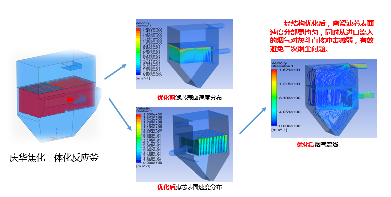 技术支持专业的CFD流场模拟,为一体化优化反应提供科学依据专业的CFD流场模拟,可随时对模型机构做出调整,使烟气在滤芯表